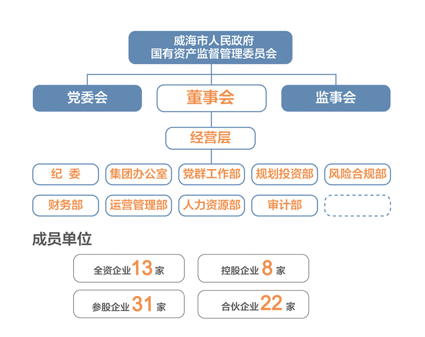 集团下辖全资企业13家、控股企业8家、参股企业31家、合伙企业22家。